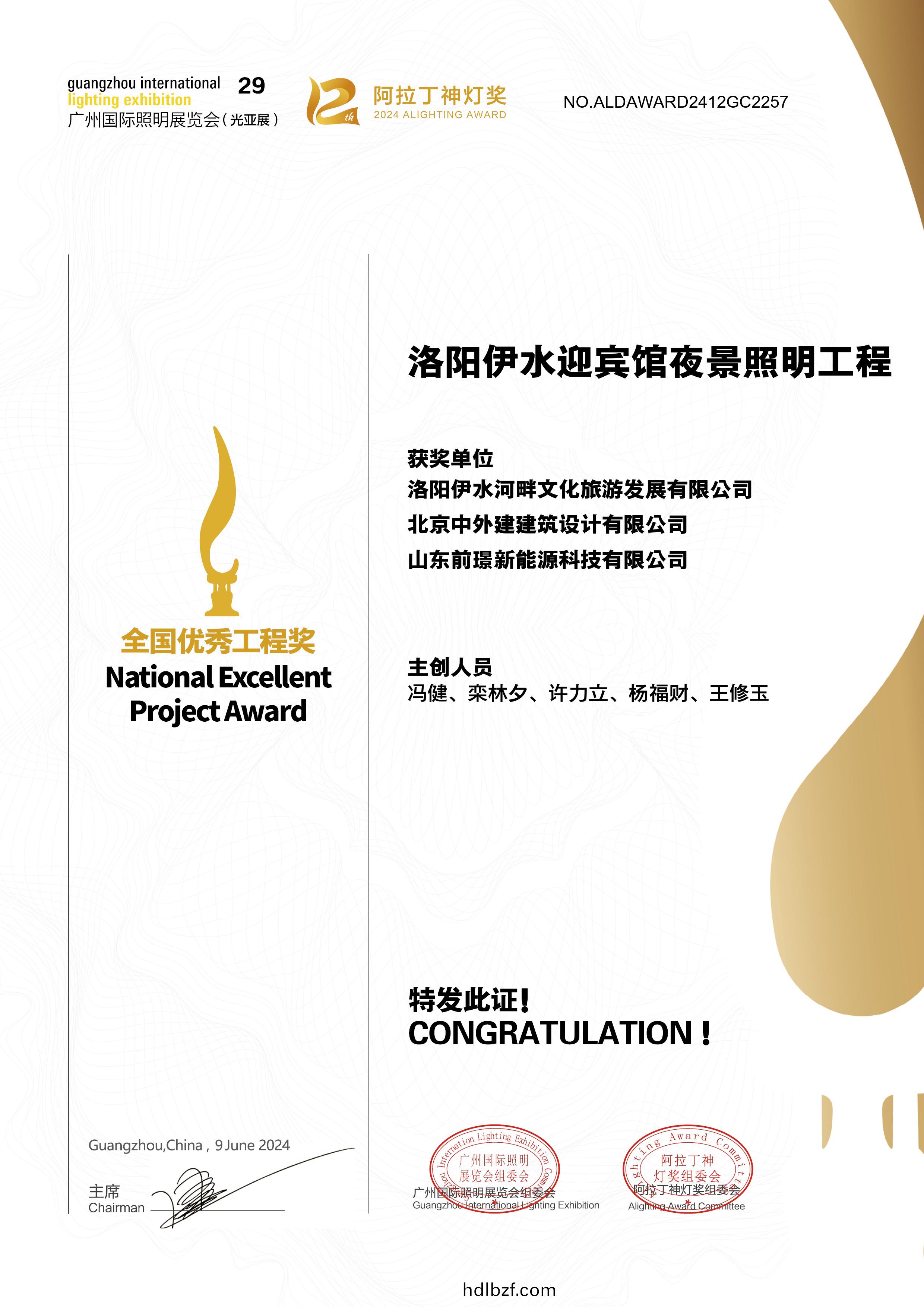 恭喜洛陽伊水(shui)迎賔館項目榮(rong)穫阿拉丁神(shen)燈獎